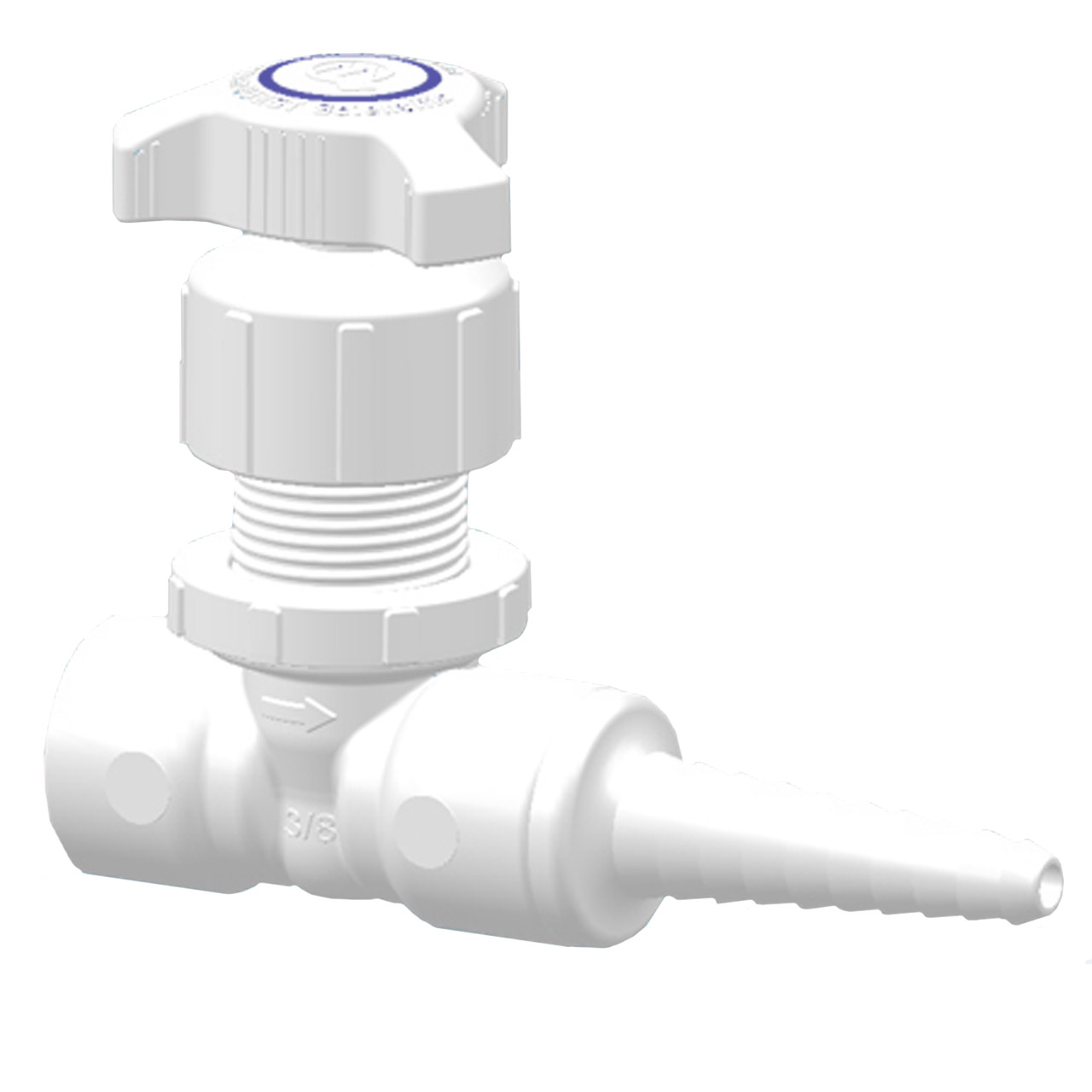 1/4" Female NPT Inlet x 1/4" thru 1/2" Tube ID Serrated Barb Tip Outlet, Globe (Straight Pattern) L Series Needle Valve, Natural Polypropylene